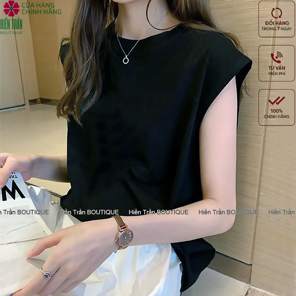 ✨Áo phông nữ Hiền Trần BOUTIQUE cổ tròn tay hến form đẹp thun trơn co giãn tốt màu đen trắng thời trang basic