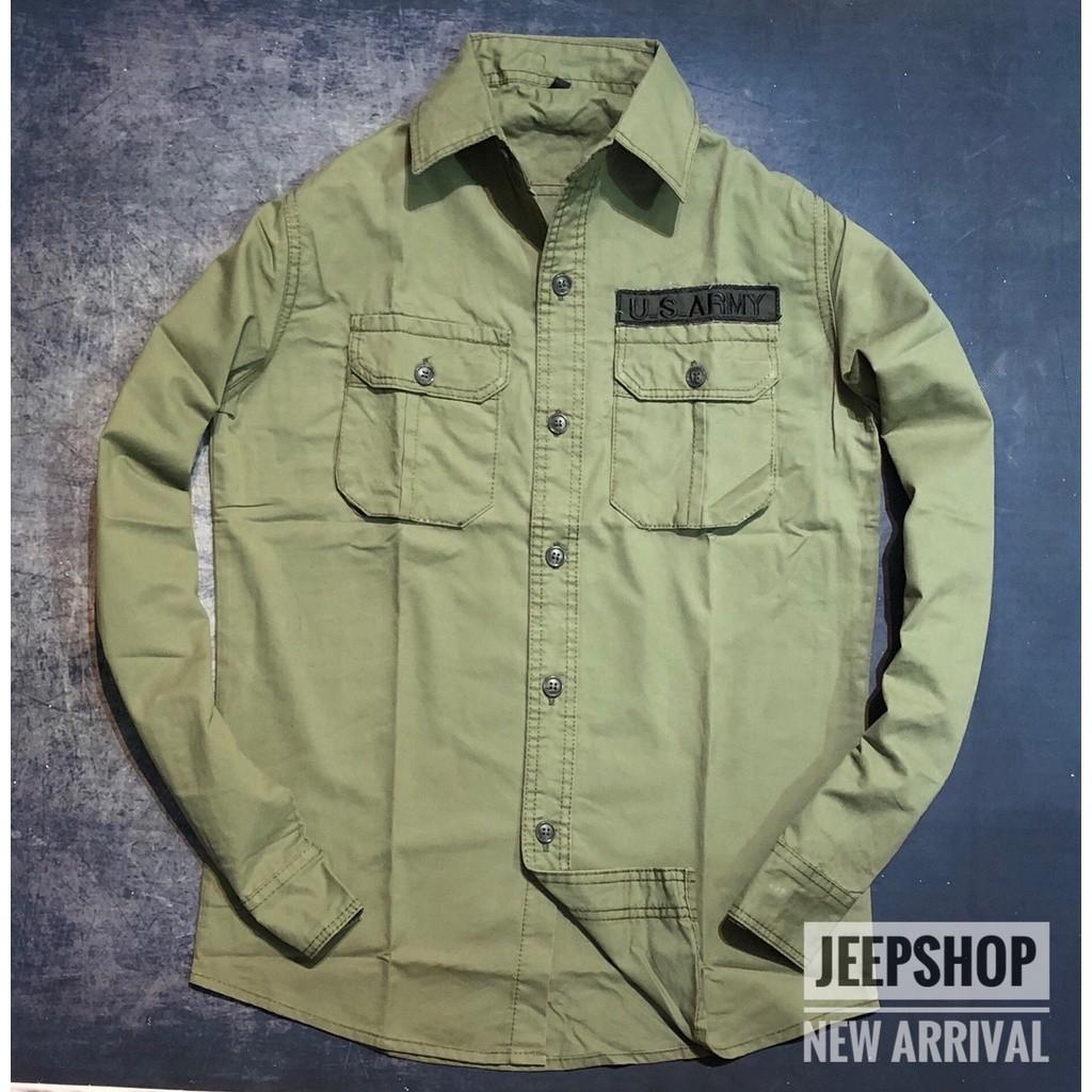 ✨Áo sơ mi dài tay US.Army_kaki_túi hộp