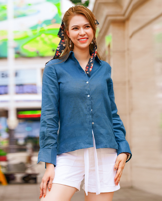 Áo Sơ Mi Linen Baptisia TOP171 Thời trang thiết kế Hity Áo sơ mi mãi mãi là chiếc áo không phân biệt giới tính, độ tuổi, dáng người, công việc, ai cũng cần có một chiếc. Áo sơ mi được định vị là Must-have item (món thiết yếu), nhưng phép biến hình đa dạng từ một chiếc áo sơ mi không chỉ dừng ở mức là chiếc áo cơ bản cần có.  Khi khoác một chiếc áo sơ mi hoàn hảo lên người, nàng sẽ cảm nhận được nhiệt lượng thật sự vô cùng khác biệt từ chất liệu, form dáng, kiểu cổ áo, gấu tay áo và kích cỡ. Trong các chất liệu làm nên chiếc áo sơ mi đẹp, Linen là chất liệu luôn đứng đầu bảng xếp hạng. Thức vải Linen mang đến form dáng áo đứng, sang trọng mà tràn đầy năng lượng phóng khoáng, tự do. Áo sơ mi Linen mang đến trải nghiệm sáng tạo cho người mặc khi có thể phối với quần, váy, jeans, skinny, hoặc mặc khoác ngoài chiếc đầm mini hoặc midi.  Trong vô vàn sắc màu của nhân loại, Xanh Chàm (Indigo) chiếm vị trí rất quan trọng trong bảng phối màu thời trang, nội thất vì những ý nghĩa và cảm xúc tốt đẹp mà nó mang lại: cảm giác bình yên, thanh thản cho tâm trí, niềm tin và sự chia sẻ. Trầm tĩnh và nhẹ nhàng, Xanh Chàm Indigo mang lại sự cân bằng hài hoà cho tổng thể trang phục, truyền tải thông điệp "Tôi là người đáng tin cậy" từ người mặc đến mọi người chung quanh.  Áo sơ mi form suông Cổ sơ mi Tay dài, cổ tay cao 7cm, xếp ly Cài bằng hàng nút vỏ sò phía trước CHẤT LIỆU Linen  Cắt may thủ công tinh tế tại Nha Trang, Việt Nam Linen hay Lanh là một trong những chất liệu lâu đời nhất ở trên thế giới. Tên gọi “linen” có nguồn gốc từ “linum” (tiếng Latin) hoặc “linon” (tiếng Hy Lạp), từ “lanh” trong tiếng Việt bắt nguồn từ “lin”trong tiếng Pháp. Vải linen được dệt từ sợi của cây lanh tự nhiên. Người ta lấy thân cây lanh – loại cây có nguồn gốc gần các hồ nước ở Thụy Sĩ tách nhỏ thành các sợi và dệt thành vải. Các sợi vải được dệt chặt tay và tương đối to, có thể nhìn thấy từng sợi trên bề mặt vải cũng như cảm nhận bằng tay rất rõ rệt. Sợi cây lanh rất sắc nhưng lại dễ dàng bị hư hỏng trong quá trình thu hoạch, do đó để có thể thu hoạch được sợi lanh phải đòi hỏi các kỹ thuật và công nghệ tiên tiến. Những người thợ sẽ tước các cây lanh vừa thu hoạch được thành những sợi dài. Cách nhanh nhất là sử dụng vi khuẩn để chúng có thể ăn hết phần thân cây bên ngoài. Sau đó những sợi mềm này sẽ được tập hợp lại và tách thành các sợi dài, từ những sợi dài này mà họ có thể dệt chúng được thành vải. Vải linen tự nhiên đặc biệt an toàn, thân thiện với người sử dụng. Vải có độ bền cao hơn rất nhiều so với các loại vải khác, lên tới khoảng 5,5 đến 6,5 gm/den (đơn vị đo độ bền của vải). Vải linen cũng có khả năng thấm hút tốt và bay hơi nhanh, giúp cho bề mặt vải khô ráo một cách tự nhiên và nhanh chóng, tạo cảm giác thoải mái khi sử dụng. Đặc biệt, vải linen còn có khả năng chịu nhiệt tốt, có thể phơi trực tiếp dưới ánh nắng mặt trời. Với một số loại vải khi phơi phóng dưới điều kiện nhiệt độ cao sẽ làm vải bị phai màu. Nhưng vải linen lại hoàn toàn ngược lại. Một đặc điểm quan trọng nhất, vải linen nhẹ, chất vải mát, sờ cực thích. Hầu hết khi lựa chọn quần áo mùa hè, người ta hay chọn chất liệu vải không dệt linen vừa bền vừa thoáng mát. Độ bóng mượt tự nhiên tạo cảm giác sang trọng, thậm chí chỉ cần chạm tay vào sờ sẽ cảm nhận được sự mát lạnh của vải, và nhìn bằng mắt cũng cảm thấy chiếc áo từ vải linen nổi bật hơn hẳn những loại vải khác. Vì là sợi tự nhiên nên linen có độ co giãn thấp, từ đó vải có thể xuất hiện những nếp nhăn, nếp gấp trên bề mặt vải chúng ta sử dụng và bảo quản không đúng cách. Vải linen có nguồn gốc thiên nhiên thân thiện với môi trường. Thân thiện làn da cũng như dễ phân hủy khi không còn sử dụng nữa.  Tại Hity, chúng tôi không ngừng nỗ lực tìm kiếm và ứng dụng các chất liệu có độ an toàn và lành mạnh cho sức khoẻ, thân thiện với làn da, giảm tối đa chất thải nilon nhằm mục đích giảm thiểu tác động của quá trình sản xuất hàng dệt may tới môi trường. Chúng tôi không sử dụng chất liệu có nilon trong tất cả các sản phẩm của mình. Hity sử dụng túi zip tái sử dụng để lưu trữ hàng hoá trong kho, thay vì mỗi sản phẩm lấy ra khỏi kho lại kèm theo một túi nilon thải đi, chúng tôi sử dụng lại túi zip tối thiểu 3 năm. Các bao bì của Hity được tái sản xuất từ vải thừa sau cắt, làm nên những chiếc túi vải xinh xắn và thân thiện. Chúng tôi khuyến khích khách hàng tái sử dụng những chiếc túi vải Hity trong sinh hoạt hằng ngày như đi siêu thị, đi mua sắm, đi du lịch. Hity không in logo trên túi nên quý khách hàng sẽ không e ngại rằng chúng tôi quảng cáo qua việc tặng túi. Chúng tôi đ