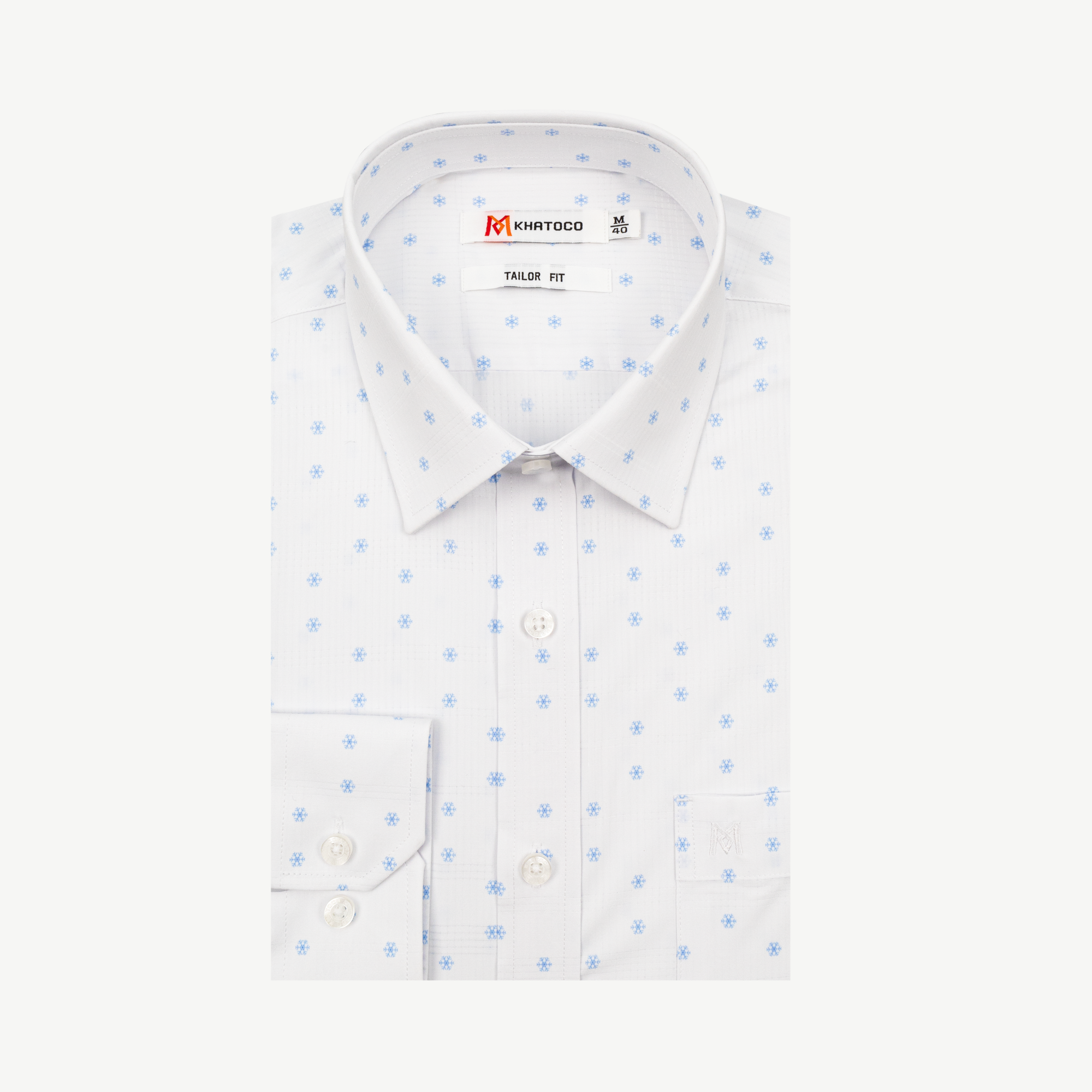 (V) MÔ TẢ: Form Taylor, tai dài Form áo tiêu chuẩn với form áo rộng vừa phải, không ôm sát cơ thể, bó nhẹ ở vùng eo và tay áo. Độ rộng vùng ngực và nách cũng sẽ fit hơn với cơ thể. Không quá rộng như form áo cổ điển. Màu vải nhã nhặn và trung tính dễ dàng phối trang phục tạo sự lịch lãm, nam tính Nút ton-sur-ton khắc logo đẹp mắt phối trọn vẹn màu áo. Logo thêu sắc nét trên túi áo. Chất liệu:50%POLYESTER- 24%COTTON-2%SPANDEX- 24%VISCOSE(BAMBOO) |Mềm mịn|Thấm hút |Kháng khuẩn|Độ thoáng khí cao|Chống tia UV|Chống nhăn|Chống co rút |Nhanh khô|Dễ vệ sinh làm sạch|Đứng phom áo Màu sắc : Màu Xanh họa tiết
