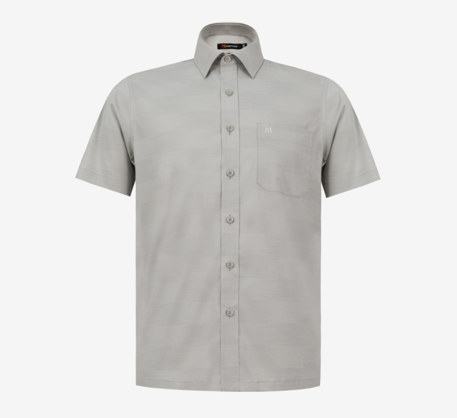 Áo sơ mi nam tay ngắn lai ngang – Khatoco - Mã hàng: A1MN498T2 - Chất liệu: - 77% Polyester (Microfiber) - 19% Viscose (Modal) - 4% Spandex → Vải cao cấp, mềm mại, thấm