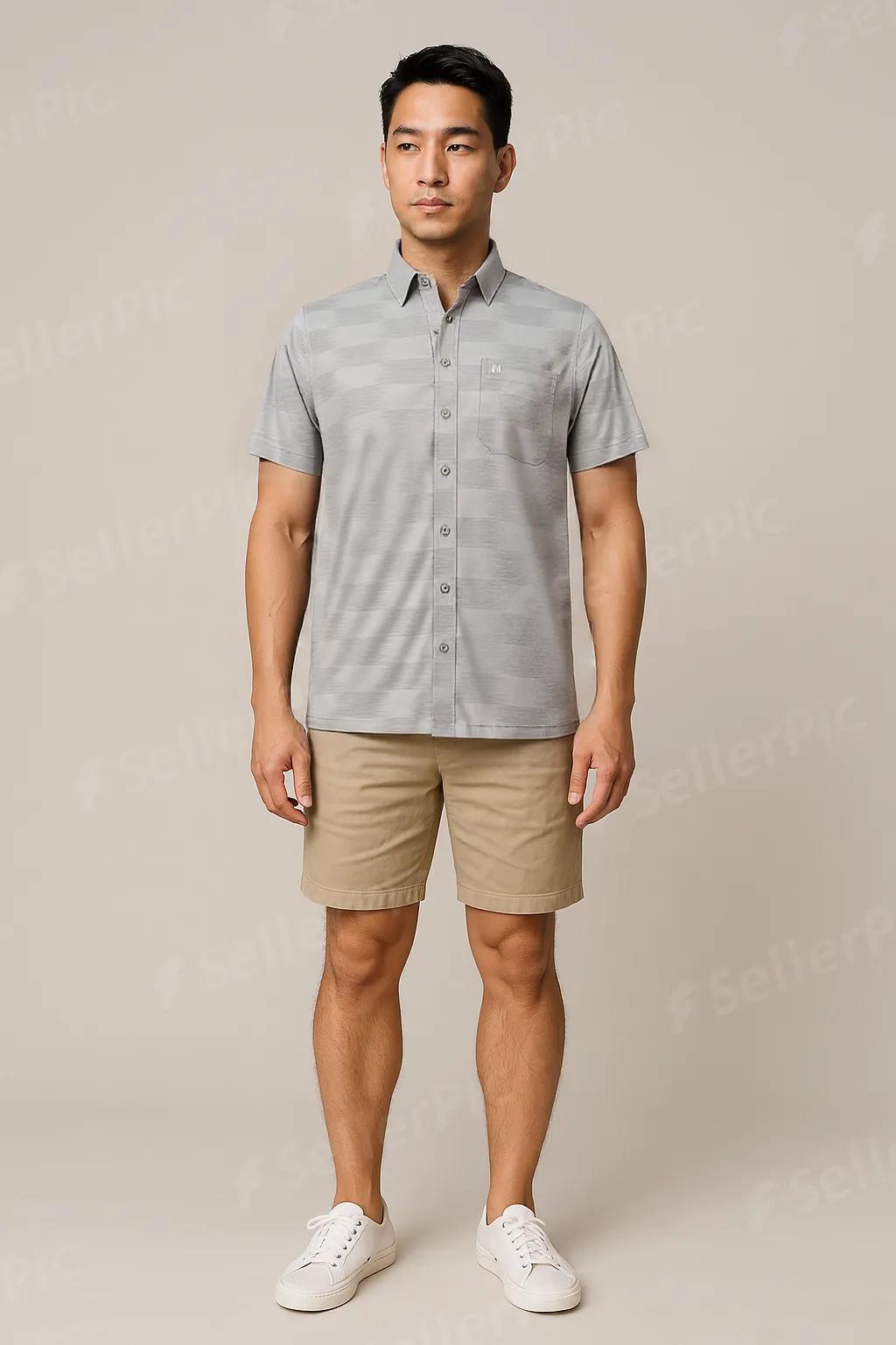 Mua tại Tiktok(V) Mô tả sản phẩm: Áo Sơ Mi Nam Ngắn Tay Khatoco – Màu Xám Sáng Kích cỡ: L – XL – 2XL Phom dáng: Tailor Fit (ôm nhẹ, tôn dáng) Chất liệu: Polyester – Viscose – Spandex Màu sắc: Xám sáng trung tính, hiện đại Mô tả sản phẩm: Mang phong cách tối giản và thanh lịch, chiếc áo sơ mi nam ngắn tay màu xám sáng từ thương hiệu Khatoco là lựa chọn lý tưởng cho môi trường công sở hoặc gặp gỡ hàng ngày. Tông màu trung tính dễ phối với nhiều kiểu quần và phụ kiện, tạo nên phong cách chỉn chu, chuyên nghiệp.