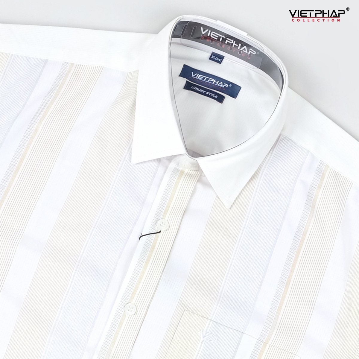✨Áo Sơ Mi Nam Ngắn Tay VIỆT PHÁP Form Luxury Chất liệu Bambo In Sọc lịch lãm, sang trọng 32768