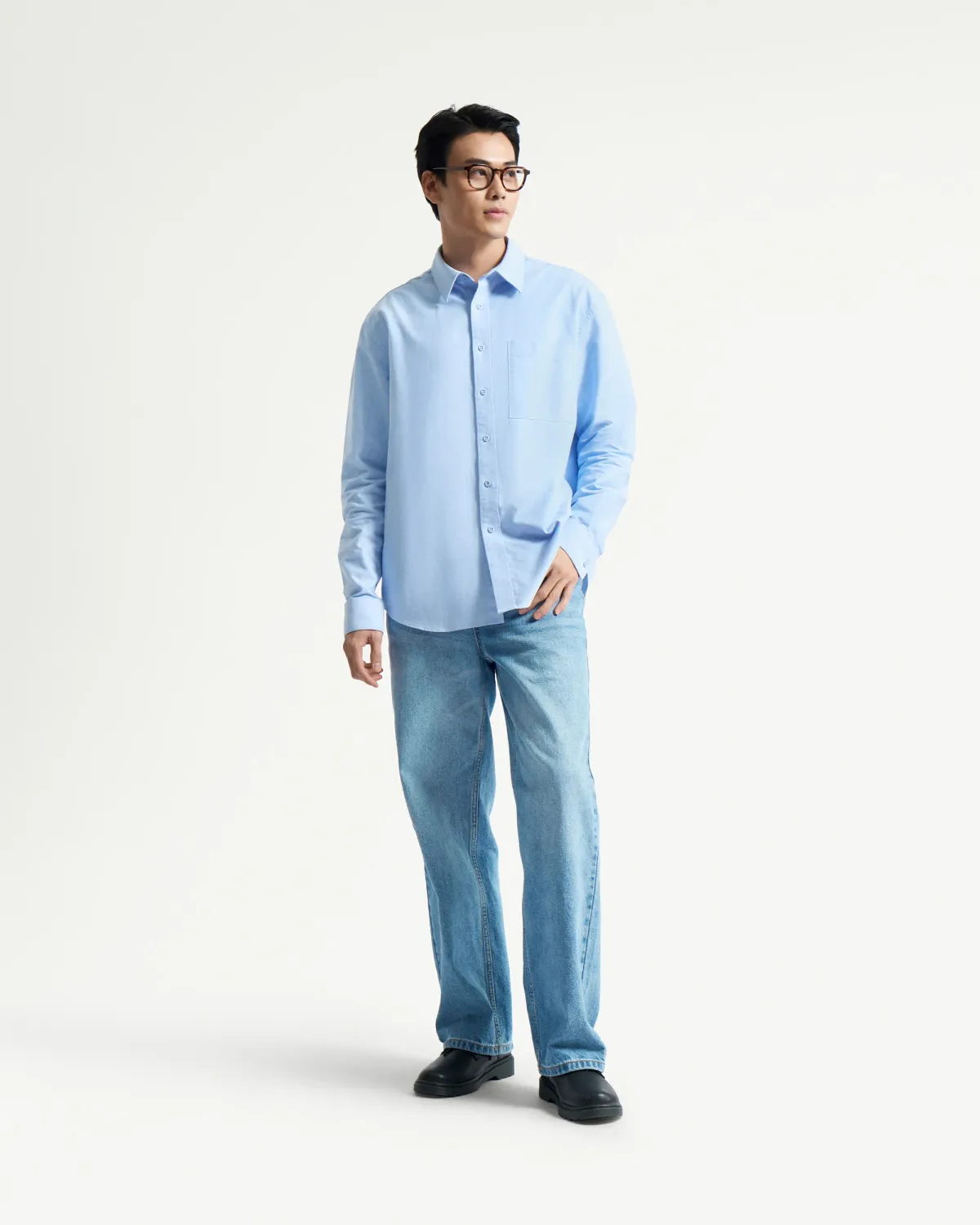 ✨Áo sơ mi nam tay dài oxford trơn xanh nhạt form loose - RT 10F24SHL008 | ROUTINE CÀ MAU