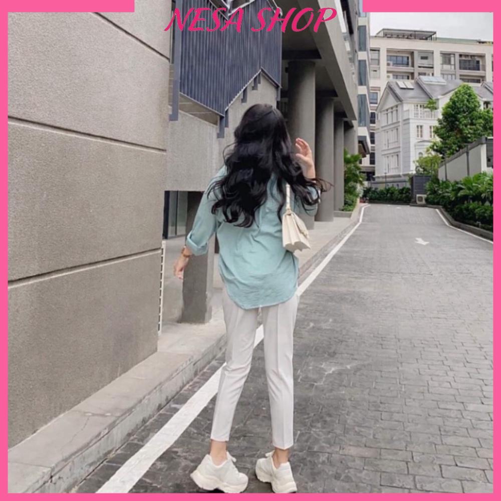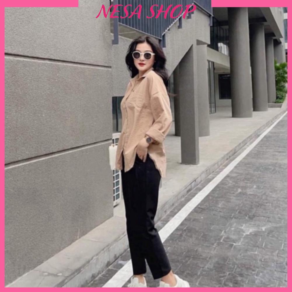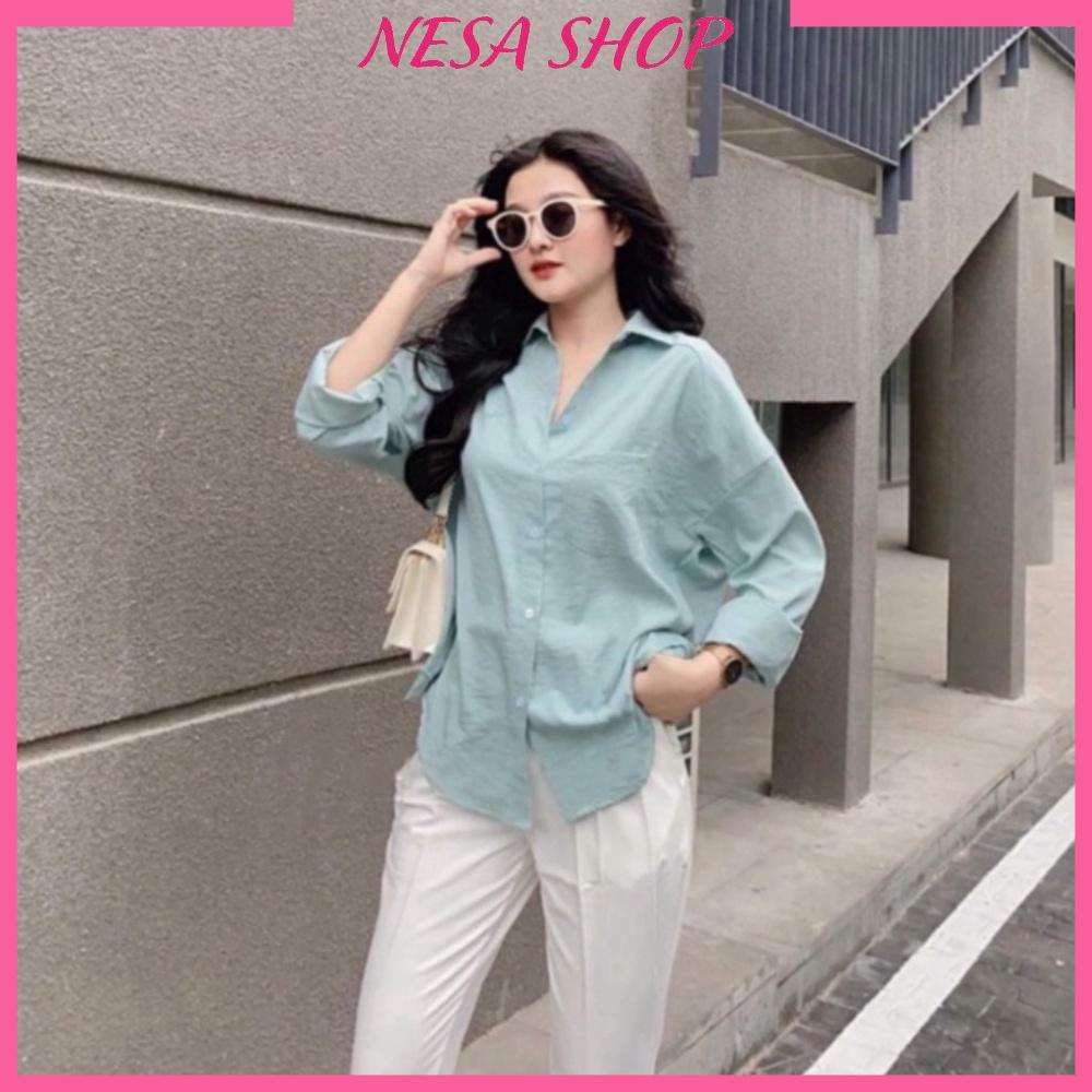 ✨Áo sơ mi nữ form rộng dáng dài chất liệu Đũi mềm nhẹ thoáng mát, áo sơ mi bigsize từ 40kg đến 95kg NeSa Shop