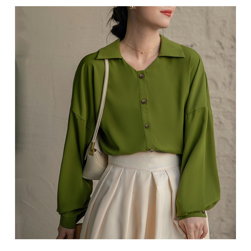 áo_sơ_mi_nữ_cổ_đức #áo_sơ_mi_xanh_rêu #áo_sơ_mi_nữ_dài_tay #áo_sơ_mi_nữ_dài #sơ_mi_dáng_dài