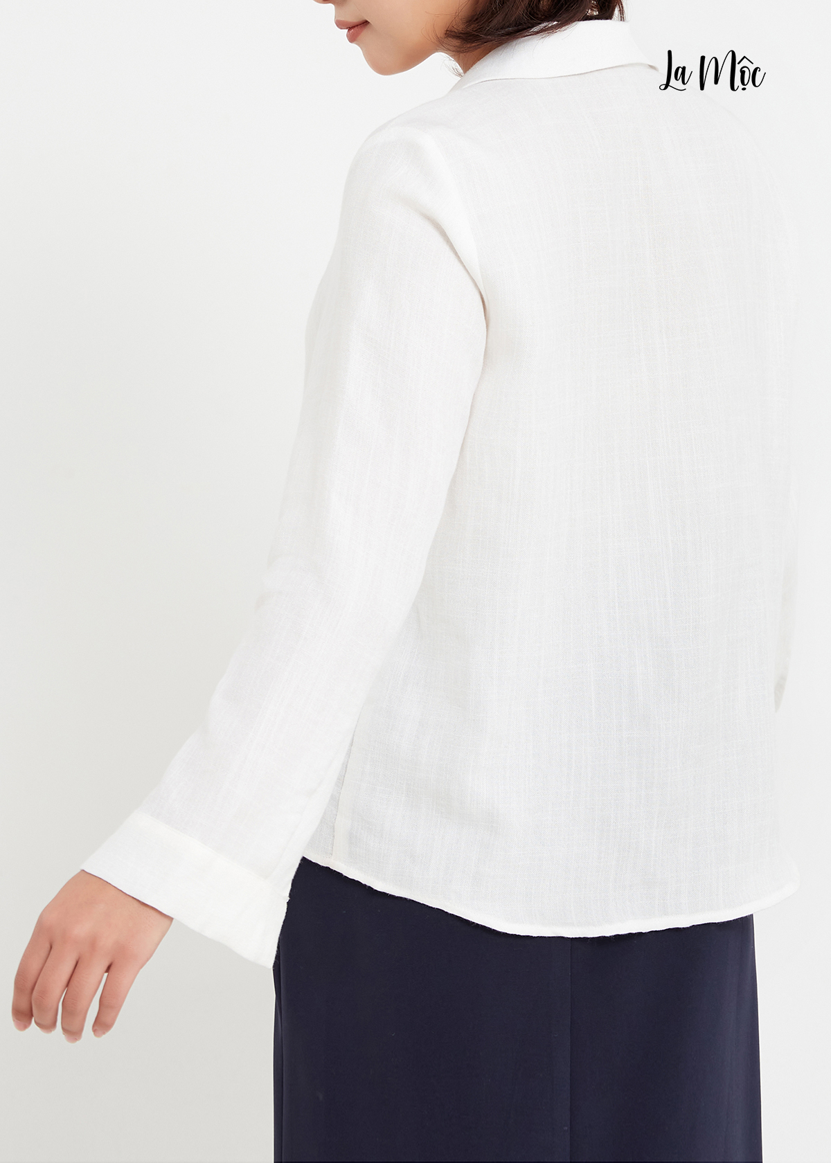 Áo sơ mi nữ Linen tay dài, không túi LA MỘC - LM0122306 - Sơ mi trắng với thiết kế cơ bản và dễ mặc. Điểm nhấn là phần xẻ tay tạo có thể thả