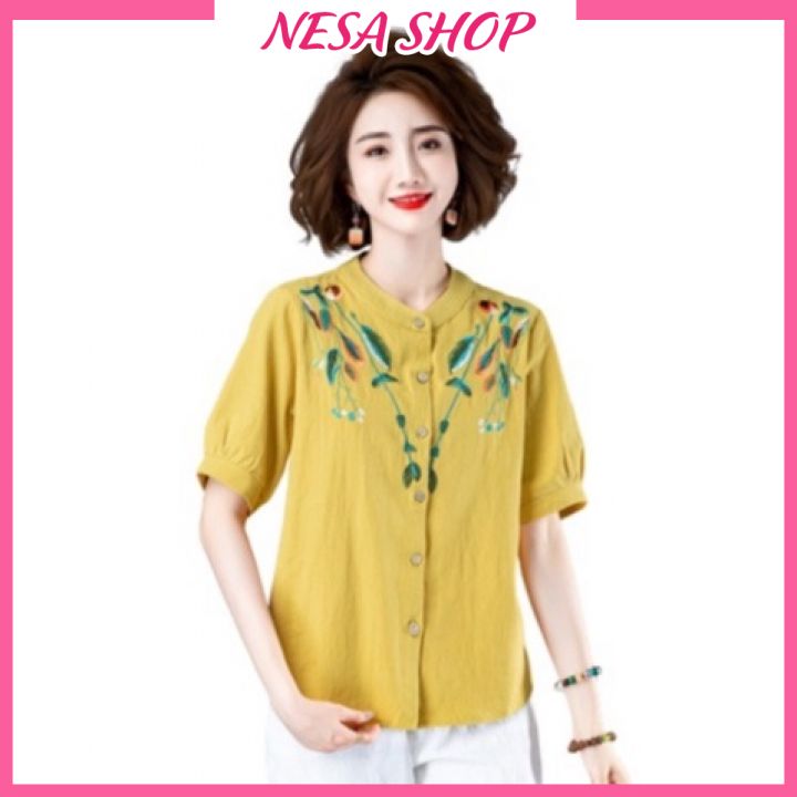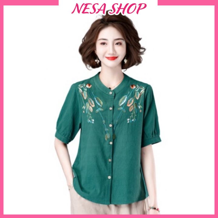 ✨Áo sơ mi nữ trung niên thêu hoa cao cấp tặng mẹ, chất liệu mềm mát form rộng bigsize, áo kiểu NeSa Shop, SMH.60