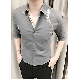 ✨Áo Sơ mi TITISHOP SM967 Màu XÁM Phối HÌNH thêu