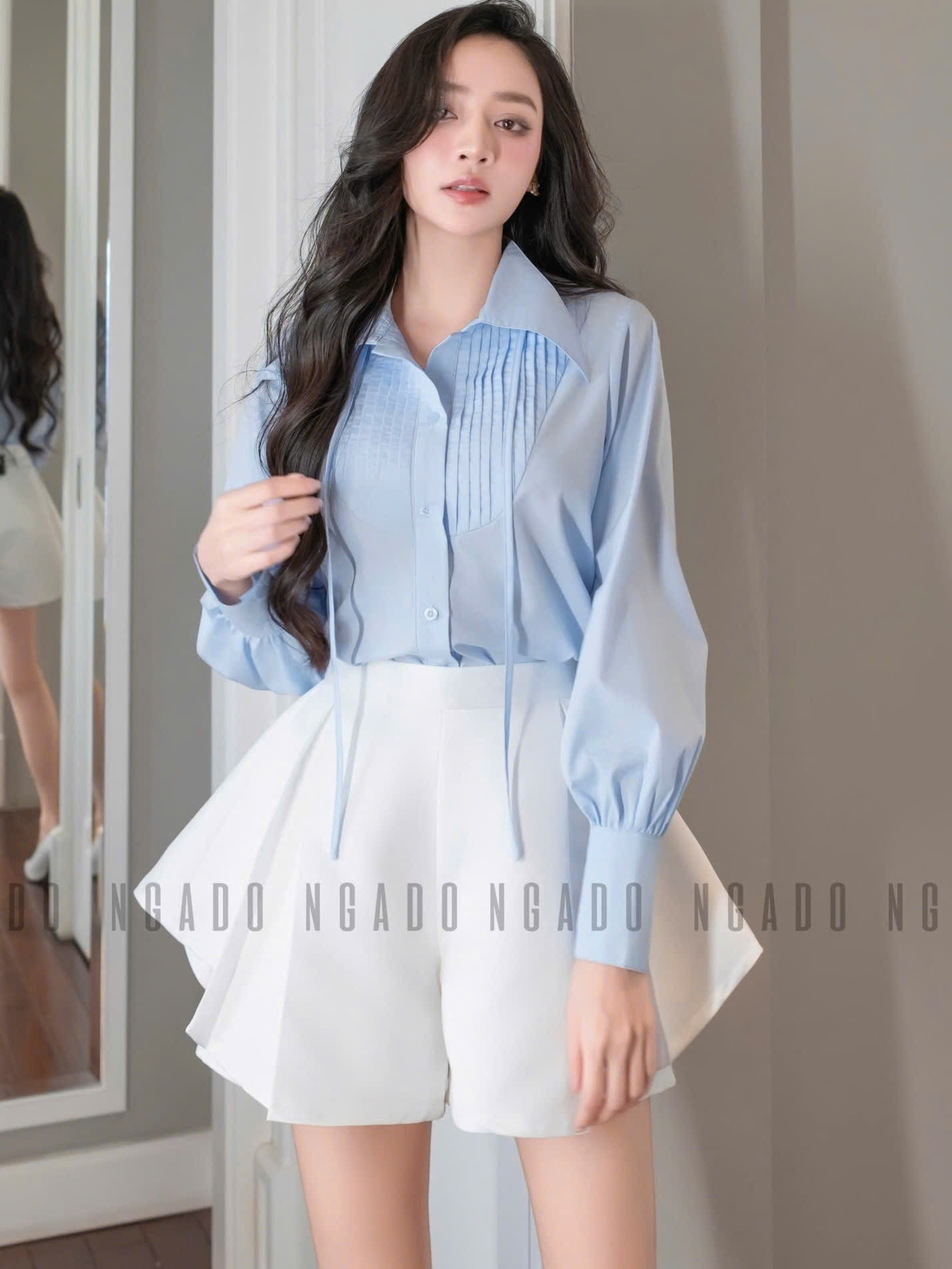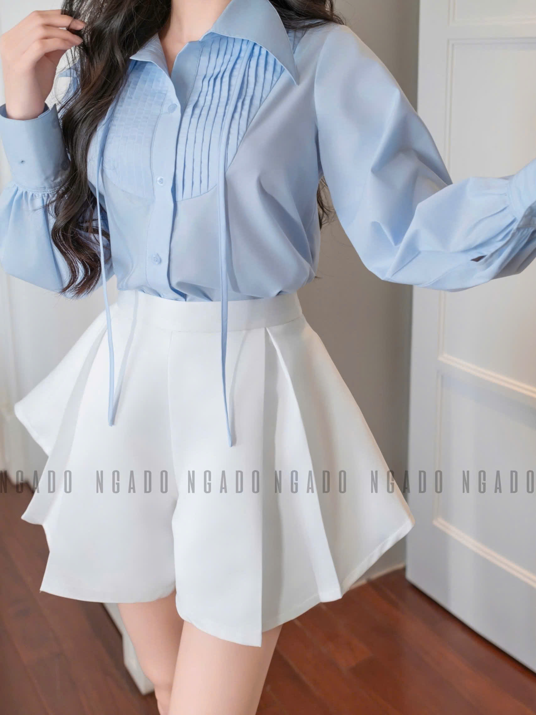 ✨Áo sơ mi xanh nhạt NGADO , áo kiểu nữ , áo sơ mi