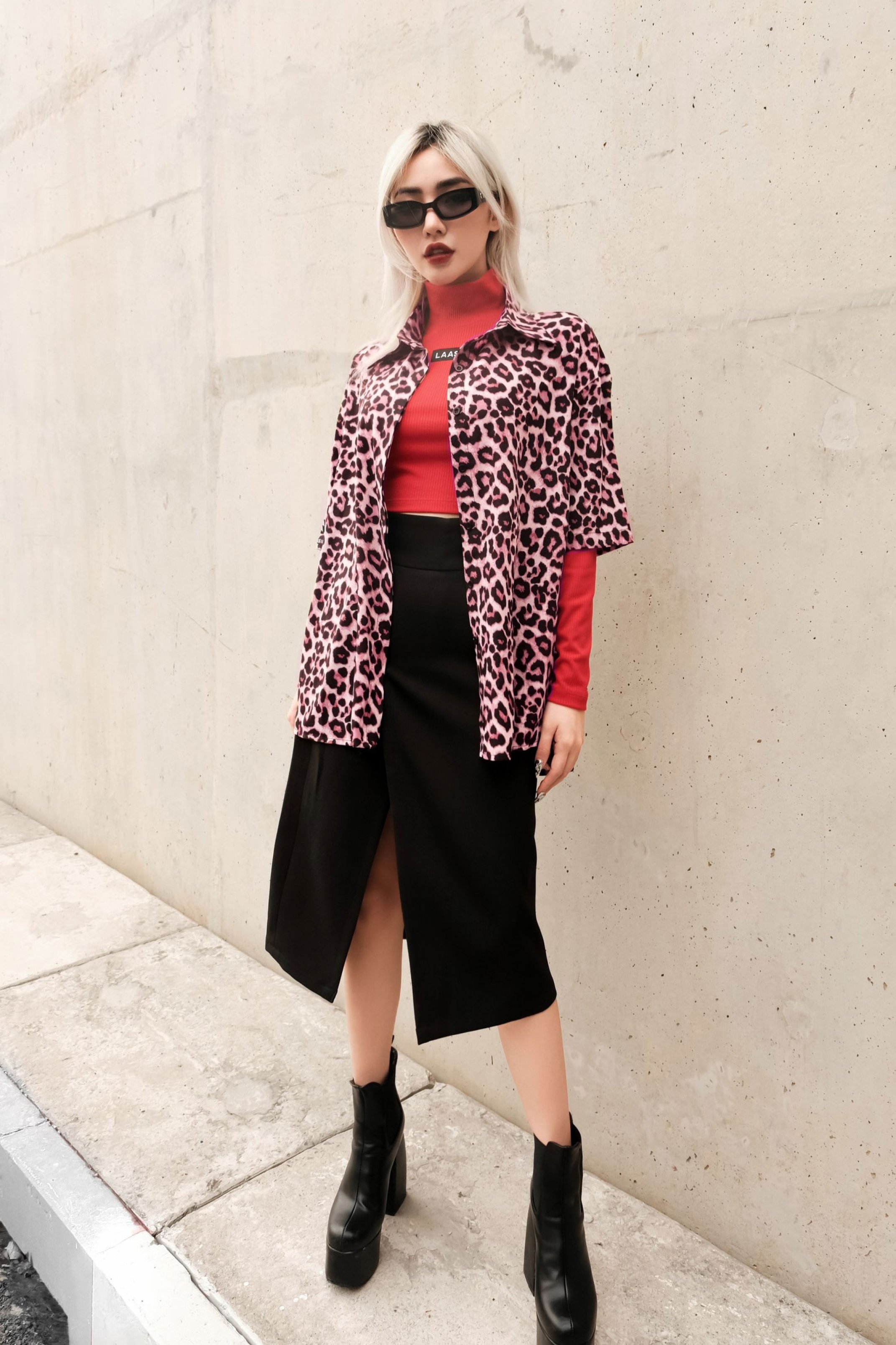 CHẤT LIỆU LỤA GIẤY, MỀM MƯỢT, KHÔNG NHĂN ÁO MÀU HỒNG, HOẠ TIẾT MÀU ĐEN ÁO SOMI NẸP GIẤU NÚT FORM RỘNG FREESIZE ĐIỂM NHẤN 1 BÊN TAY PHẢI ÁO GẮN TAG LOGO LAAS