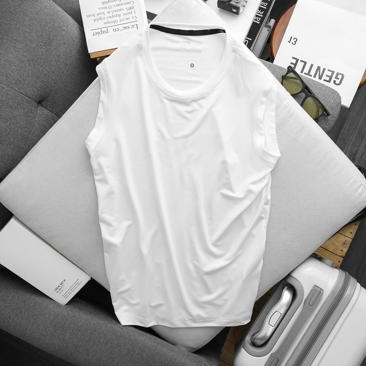 Với thiết kế đơn giản trơn và phần tay áo khoét sâu không hề cộm khi anh em mặc