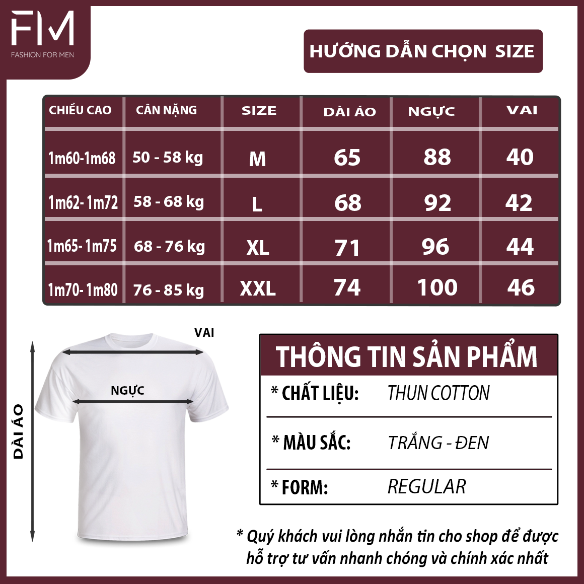 - Xuất xứ: Việt Nam Bảng màu: Đen – Trắng. Áo thun nam form rộng in họa tiết chữ Since 2020của Formen shop là sản phẩm chắc chắn bạn phải có trong tủ quần áo với bảng màu vô cùng đa dạng, giúp bạn có thể thay đổi phong cách hàng ngày. Kích thước: + M Chiều cao 1M6-1M68 / Cân nặng: 50-60 kg + L Chiều cao 1M62-1M72 / Cân nặng: 60-70 kg + XL Chiều cao 1M65-1M75 / Cân nặng: 70-76 kg + XXL Chiều cao 1M70- 1M80/ Cân nặng: 76-85 kg (Số đo người mẫu: 68kg – 1M77 mặc size XL) Liên hệ ngay với Formen shop để được tư vấn size khi cần bạn nhé Hướng dẫn sử dụng và bảo quản: