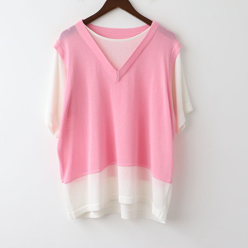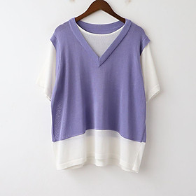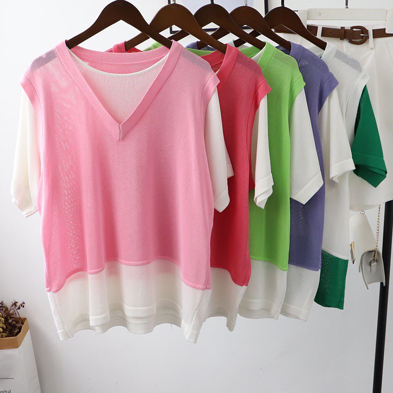 ✨áo thun nữ hai mảnh vải mỏng len dệt kim ngắn tay freesize