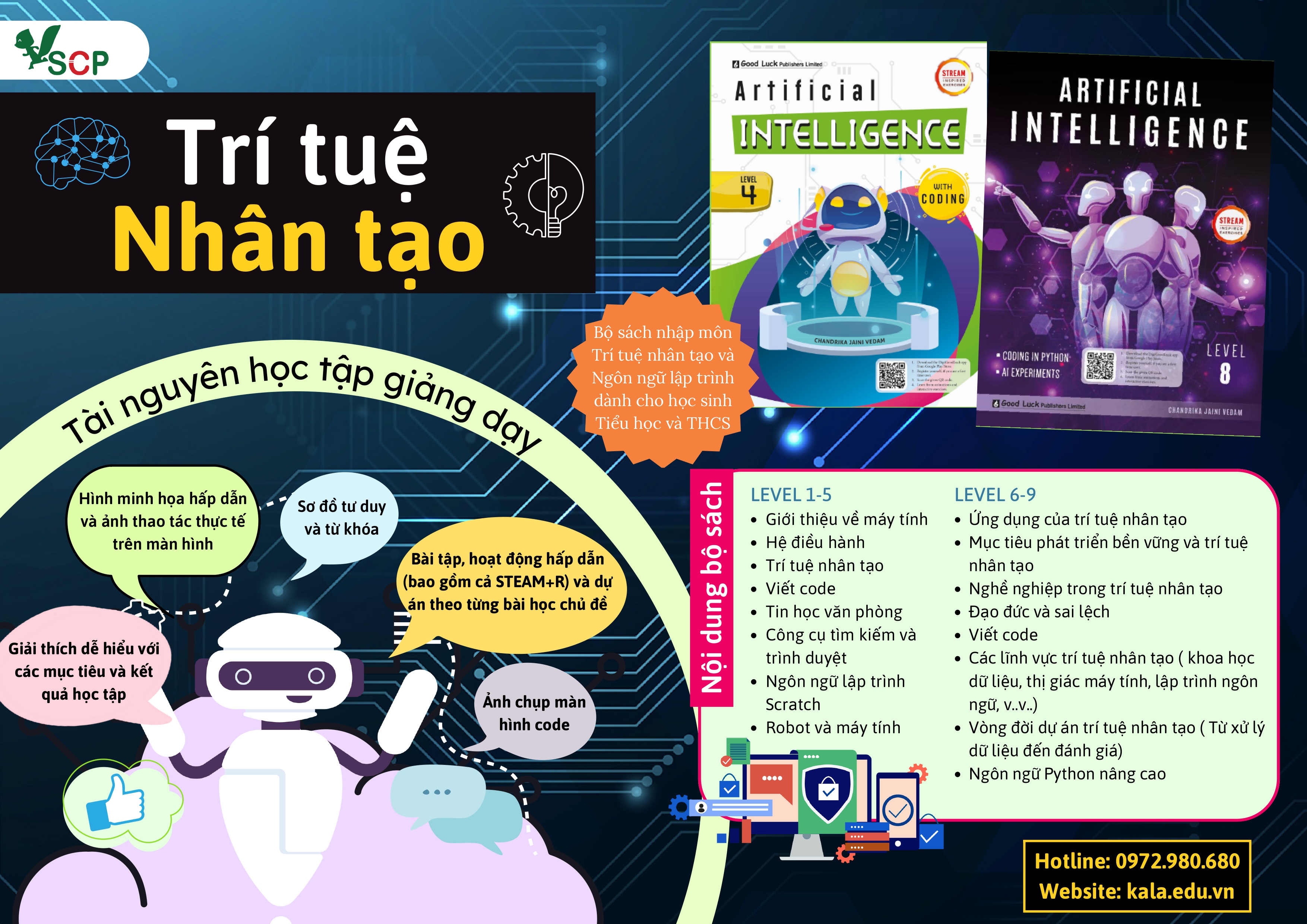 Hiểu được những điều đó, bộ sách “Trí tuệ nhân tạo và Ngôn ngữ lập trình” cấp độ 1 - 5 dành cho học sinh Tiểu học đã ra đời, trở thành nền tảng vững chắc cho các bạn nhỏ muốn học tập và phát triển về khoa học công nghệ. Với những bài học thú vị và kiến thức bổ ích trong thực tế mà bộ sách đem lại, các bạn nhỏ có thể nhanh chóng tiếp cận với AI và cách viết mã cùng ngôn ngữ lập trình Scratch. Bộ sách cũng giải thích và mô tả các ứng dụng cụ thể của AI theo cách phù hợp với lứa tuổi của trẻ ở bậc Tiểu học. Qua những bài học cụ thể và thực tế, bộ sách sẽ giúp trẻ phát triển tư duy logic và hình thành tính tự giác học tập, thông qua sự tương tác và các bài tập thực hành hấp dẫn, trẻ sẽ có những giờ học thú vị và đầy ý nghĩa.
