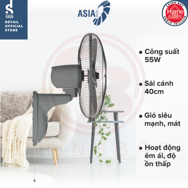 THÔNG TIN VỀ SẢN PHẨM QUẠT TREO TƯỜNG ASIAVINA L16021 Thông số kỹ thuật Sải cánh: 40cm Công suất: 55W Dòng điện: 220V-50Hz Lượng gió: 88 m3/phút Hệ số tiết kiệm năng lượng: 1,24