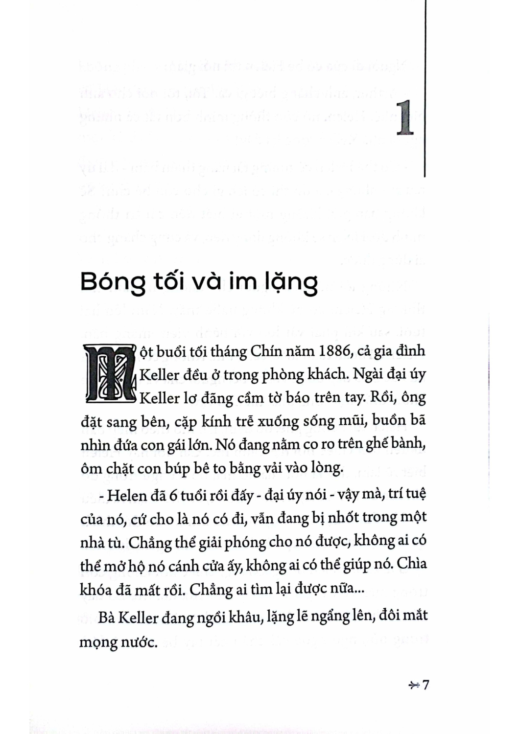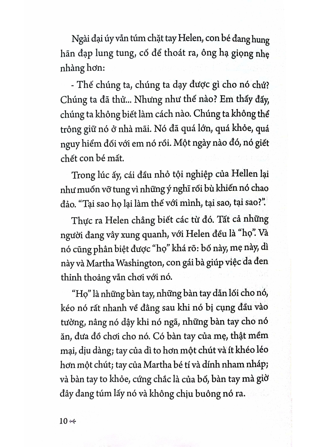 Bà Đại Sứ (PNU) Sau những ngày vật lộn với bệnh viêm màng não vào năm lên hai tuổi, Helen Keller đã hoàn toàn bị điếc, câm, mù. Tương lai tưởng chừng như đen tối