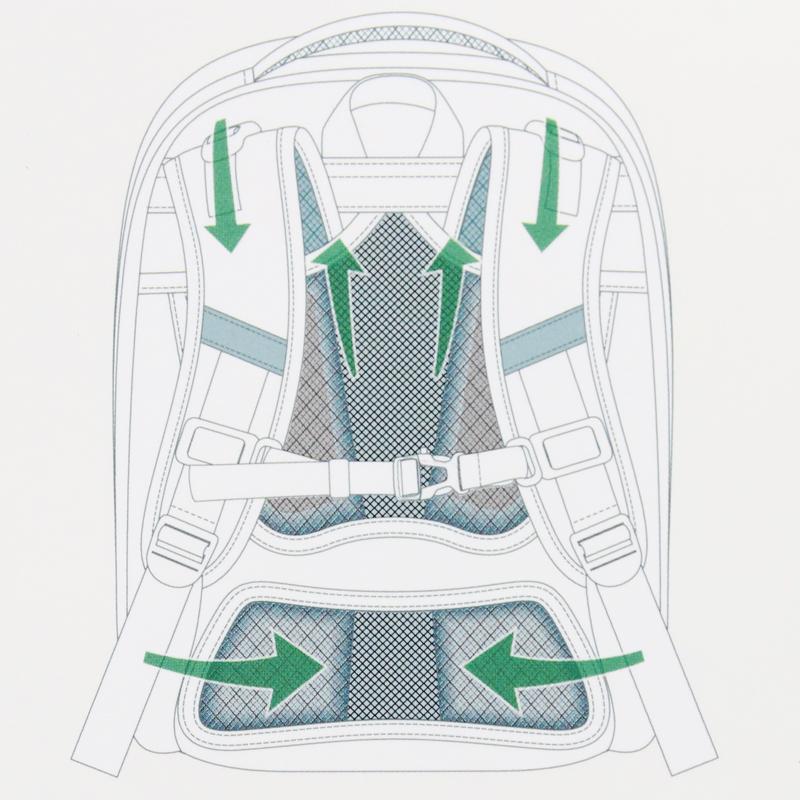 Phần quai đeo thiết kế cong ôm sát phần vai và ngực, có kèm đệm mút êm nên tránh tính trạng xô lệch cặp 2 bên, giảm trọng lực và chống cong vẹo cột sống.