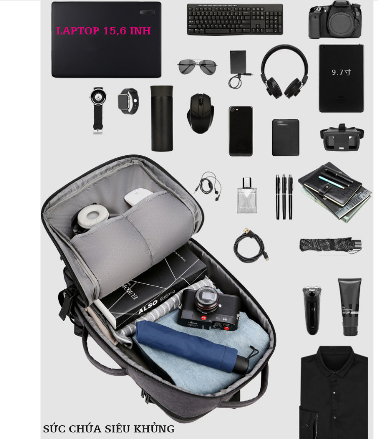 ✨Ba lô nam thông minh đa năng siêu cao cấp nam sạc USB tiện dụng chứa máy tính 14 đến 17 inh - xám đá