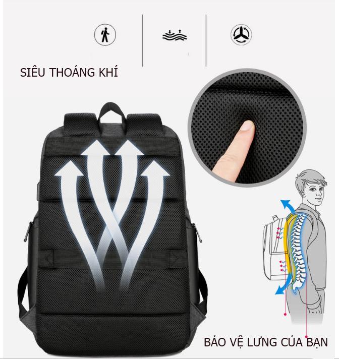 Balo du lịch chống nước BLU08 có cổng sạc USB, Balo nam đi học đẹp đựng laptop 15.6 inch