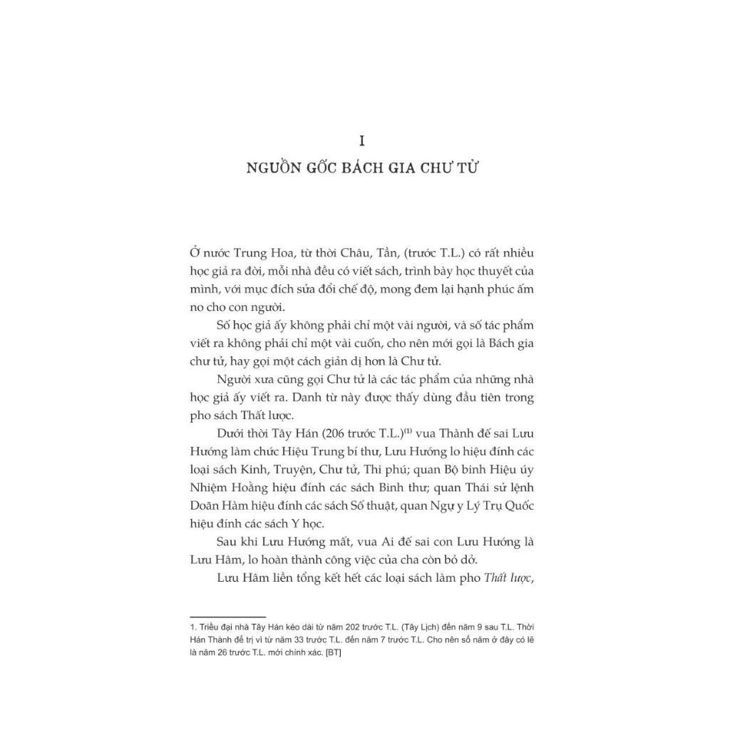 Bách gia chư tử của Thảo Đường Cư Sĩ Trần Văn Hải Minh là bản lược thuật các tư tưởng nổi bật cùng thư tịch kinh điển của từng học phái triết học thời Xuân Thu Chiến Quốc ở Trung Quốc, giới thiệu cuộc đời và triết thuyết của từng nhân vật nổi danh để giúp người đọc có góc nhìn đa chiều về từng vấn đề. Với lối viết gần gũi dễ hiểu thích hợp cho mọi đối tượng độc giả muốn bước vào vườn hoa triết học phương Đông đầy màu sắc và vô cùng thú vị, Bách gia chư tử là cuốn sách nhập môn hữu dụng.
