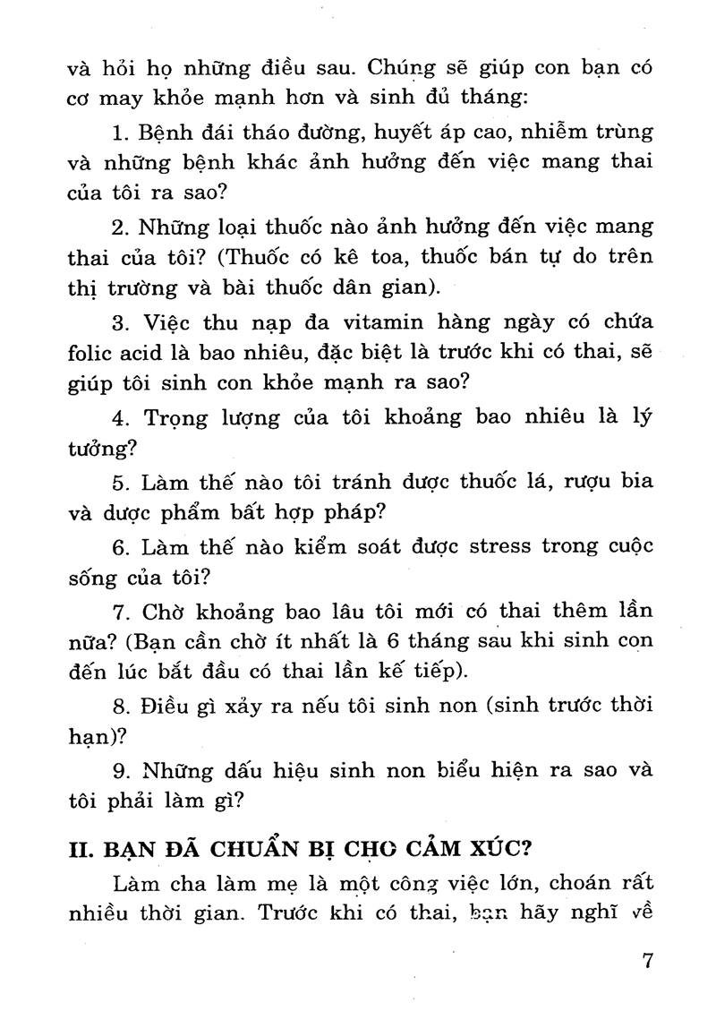 Bách khoa Tri Thức Thai Sản Tập 1 - Để Sinh Con Khỏe Mạnh & Thông Minh Mục lục sách: Chương I: Chuẩn bị trước khi mang thai 1. Những tri thức cơ bản về