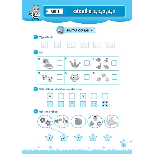 Các bài tập trong phần này được thiết kế sinh động, đầy cảm hứng với rất nhiều các hoạt động nối, tô màu, điền số, giúp khơi gợi hứng thú học và làm bài tập của các em, đồng thời giúp các em củng cố và nắm chắc các kiến thức đã học.