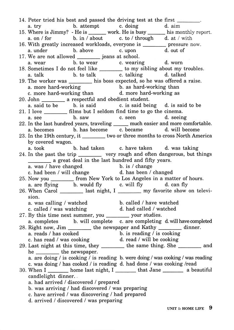 BÀI TẬP TRẮC NGHIỆM TIẾNG ANH 12 - UNIT 1 HOME LIFE