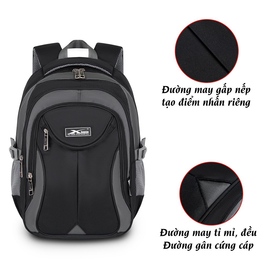 Balo đựng laptop nam XBags này có 2 ngăn chính và nhiều ngăn phụ, Balo đựng laptop nam này có nhiều ngăn, túi nhỏ khác nhau rất tiện dụng để các vật dụng khác như sách vở, dụng cụ học tập...
