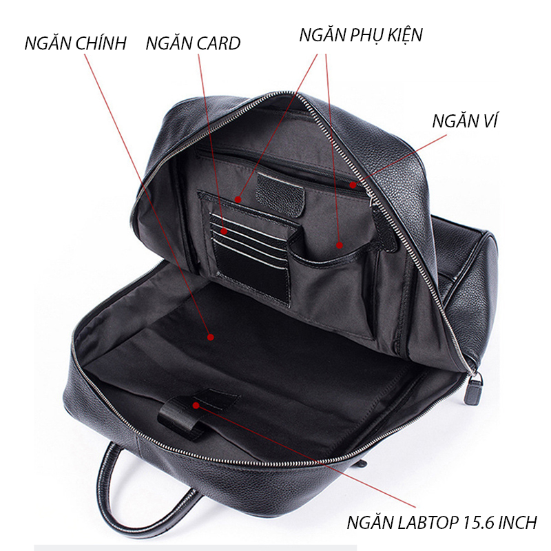 Kích thước : rộng 31cm X cao 43cm X dày 15cm Trọng lượng: 1.2 kg Dung tích: laptop 15.6 inch Màu sắc: Đen Phương pháp sản xuất: thủ công Chất liệu : Da BÒ THẬT