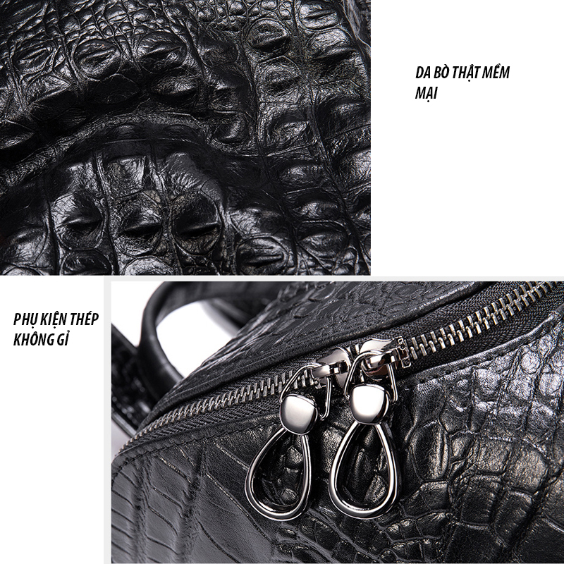 Kích thước : rộng 26cm X cao 37cm X dày 12cm Trọng lượng: 1.2 kg Dung tích: laptop 13.3 inch Màu sắc: Đen Phương pháp sản xuất: thủ công Chất liệu : Da BÒ THẬT