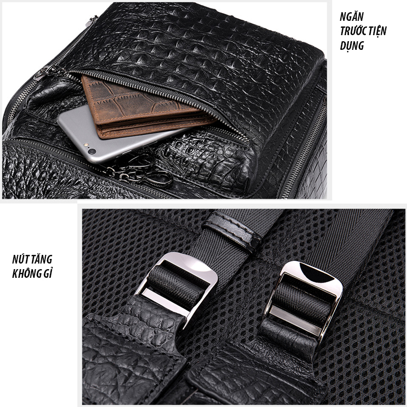 Kích thước : rộng 27cm X cao 38cm X dày 13cm Trọng lượng: 0.9 kg Màu sắc: Đen Phương pháp sản xuất: công nghệ cao Chất liệu : Da Chức năng: thoáng khí, chống mài