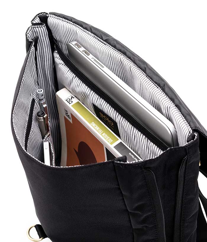 ️Ngăn chính lớn có thể đựng vừa laptop từ 13.3" trở xuống. Các ngăn có khóa kéo zip down an toàn.