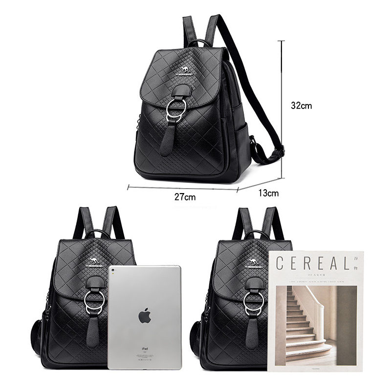 Mua tại TiktokTHÔNG TIN CHI TIẾT CỦA SẢN PHẨM : Kích thước (Dài x Rộng x Cao) : 26 x 14 x 31 cm. Màu sắc : Đen Chất liệu : Da PU cao cấp chống thấm