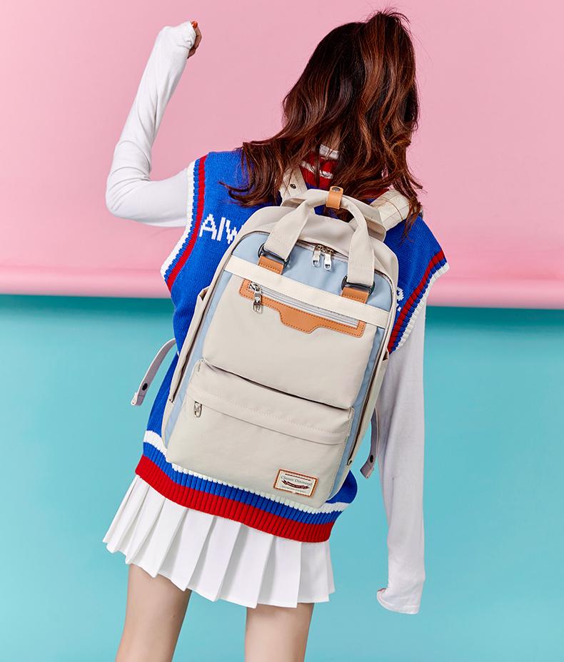 Bên ngoài mặt trước balo có thêm 2 ngăn phụ kéo khoá để bạn đựng các vật dụng như son phấn, thẻ, gương,…