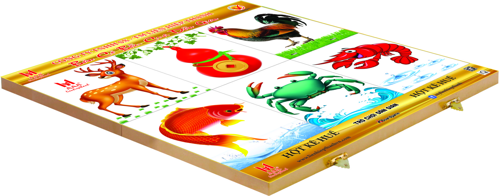 BÀN CHƠI BẦU CUA TÔM CÁ BẰNG GỖ Cách chơi đơn giản: Có 6 linh vật lần lượt là: BẦU-CUA -TÔM-CÁ-CUA-GÀ chọn ra một người làm nhà quản lý và đổ xí ngầu,người chơi sẽ