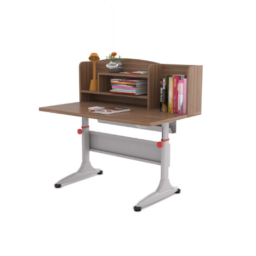 Bàn học sinh bằng gỗ có kệ sách - Bàn ngồi học tăng giảm chiều cao chống gù cho trẻ em có giá treo
