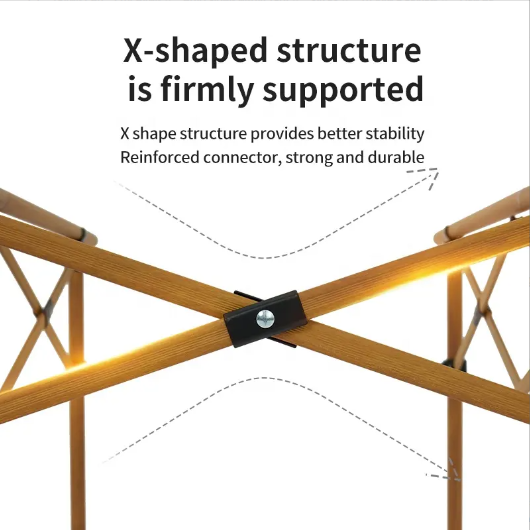 NatureHike CNH22JU038 chất liệu hợp kim nhôm vân gỗ nhẹ, bền và vô cùng sang trọng. Thiết kế khung bàn chữ X hỗ trợ ổn định hơn, tải trọng cao tới 30kg. Khung bàn có thể