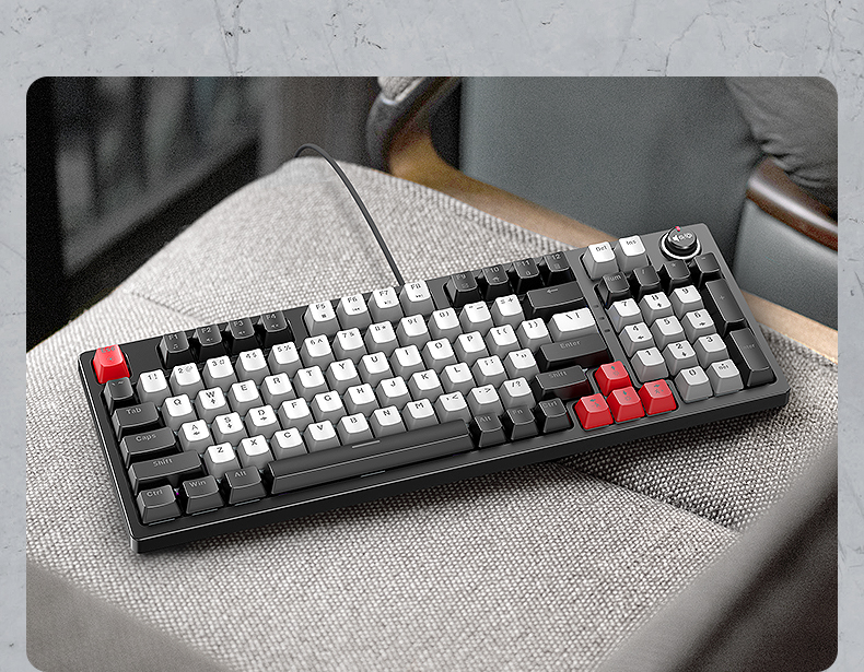 Mô tả sản phẩm Keyboard T-WOLF T50 Black Chính hãng (Phím cơ, 97 key, Blue Switch, 22 chế độ LED) BH 12 tháng Với thiết kế màu đen xám tinh tế, bàn phím này không