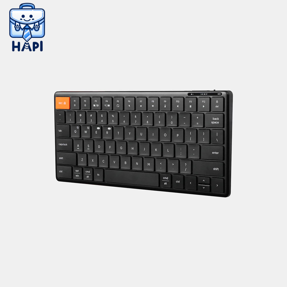 Mua tại TiktokThiết kế tổng thể của bàn phím rất tinh tế, sang trọng. Góc nghiêng được tối ưu hóa theo tiêu chuẩn công thái học, giúp giảm thiểu sự mỏi cổ tay khi gõ phím trong thời gian dài Với hành trình phím 1.8mm, bàn phím mang lại trải nghiệm gõ êm ái, chính xác và không gây mỏi tay khi sử dụng lâu dài. Cơ chế "X-Scissors" đặc biệt giúp giảm tiếng ồn khi gõ, rất phù hợp cho môi trường văn phòng, thư viện hoặc làm việc ban đêm Bàn phím hỗ trợ ba chế độ kết nối: qua dây Type-C, Bluetooth 5.2 và receiver 2.4G. Điều này cho phép bạn kết nối cùng lúc với tối đa 4 thiết bị, giúp dễ dàng chuyển đổi giữa laptop, PC, tablet và các thiết bị khác Bàn phím có khung và đáy hoàn toàn bằng nhôm, mang lại cảm giác cầm nắm chắc chắn, đầm tay và bền bỉ hơn hẳn so với các loại bàn phím thông thường THÔNG TIN CƠ BẢN