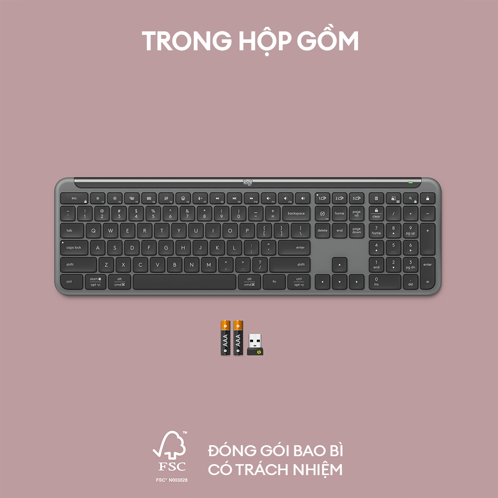 Gõ yên tĩnh giúp bạn tập trung hơn và ít làm phiền người khác hơn. Kết nối không dây với Bluetooth hoặc đầu thu USB Logi Bolt đi kèm và tập trung lâu hơn với thời lượng pin lên tới 36 tháng.
