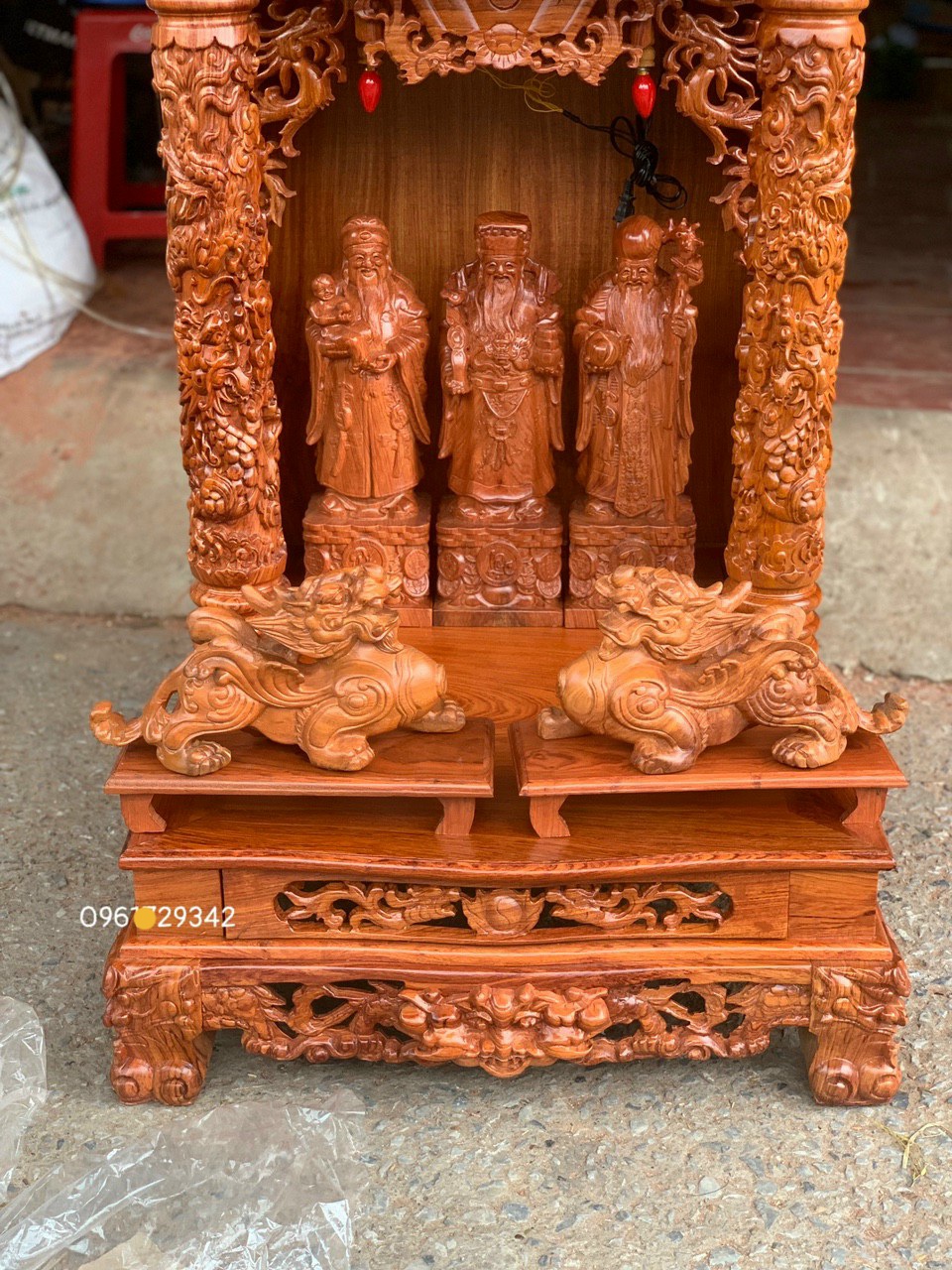 _,Bàn thờ ông địa ông thần tài được làm bằng chất liệu gỗ hương đá tự nhiên 100% _ Kích thước 61×69cm _ Bàn thờ ông địa ông thần tài được trạm khắc tỉ mỉ
