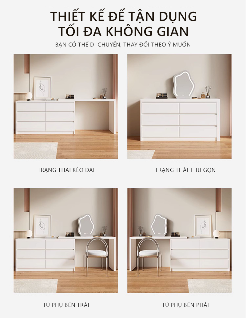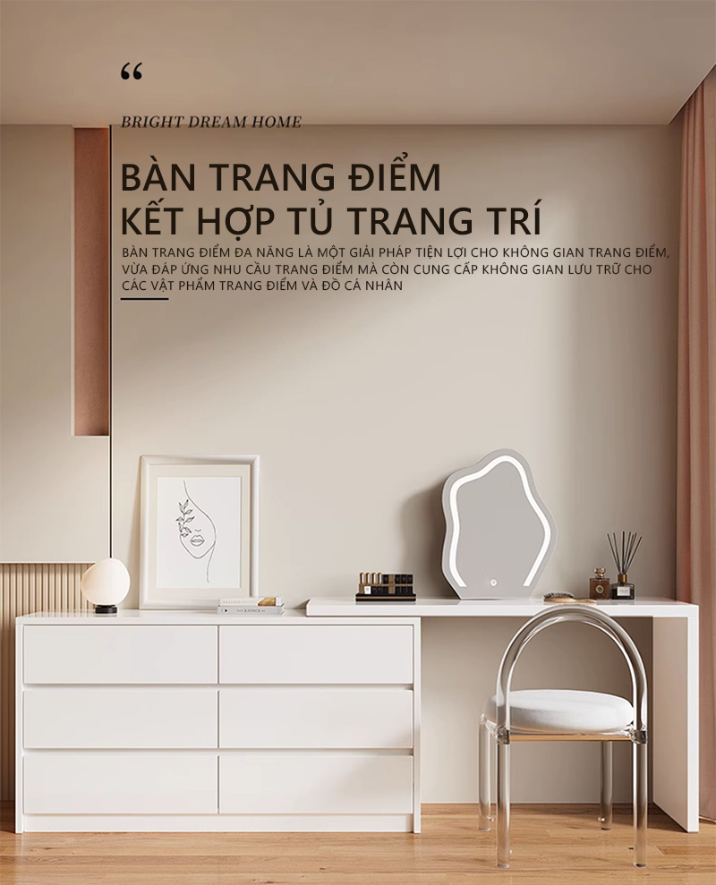 * Bàn trang điểm nhỏ gọn, đa năng - Bàn phấn trang điểm nhỏ gọn, đa năng với thiết kế đơn giản, các chi tiết hạn chế tối đa sự cầu kỳ, phức tạp