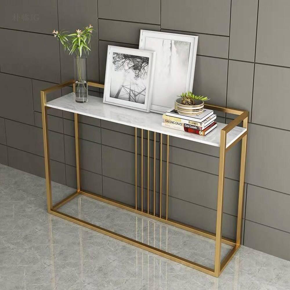 Bàn console, bàn trang trí mặt đá trắng khung sơn vàng CSTCT019 với điểm nhấn khung sắt sơn màu vàng kết hợp mặt đá trắng vân tạo toát lên vẻ đẹp sang trọng giúp nâng tầm giá