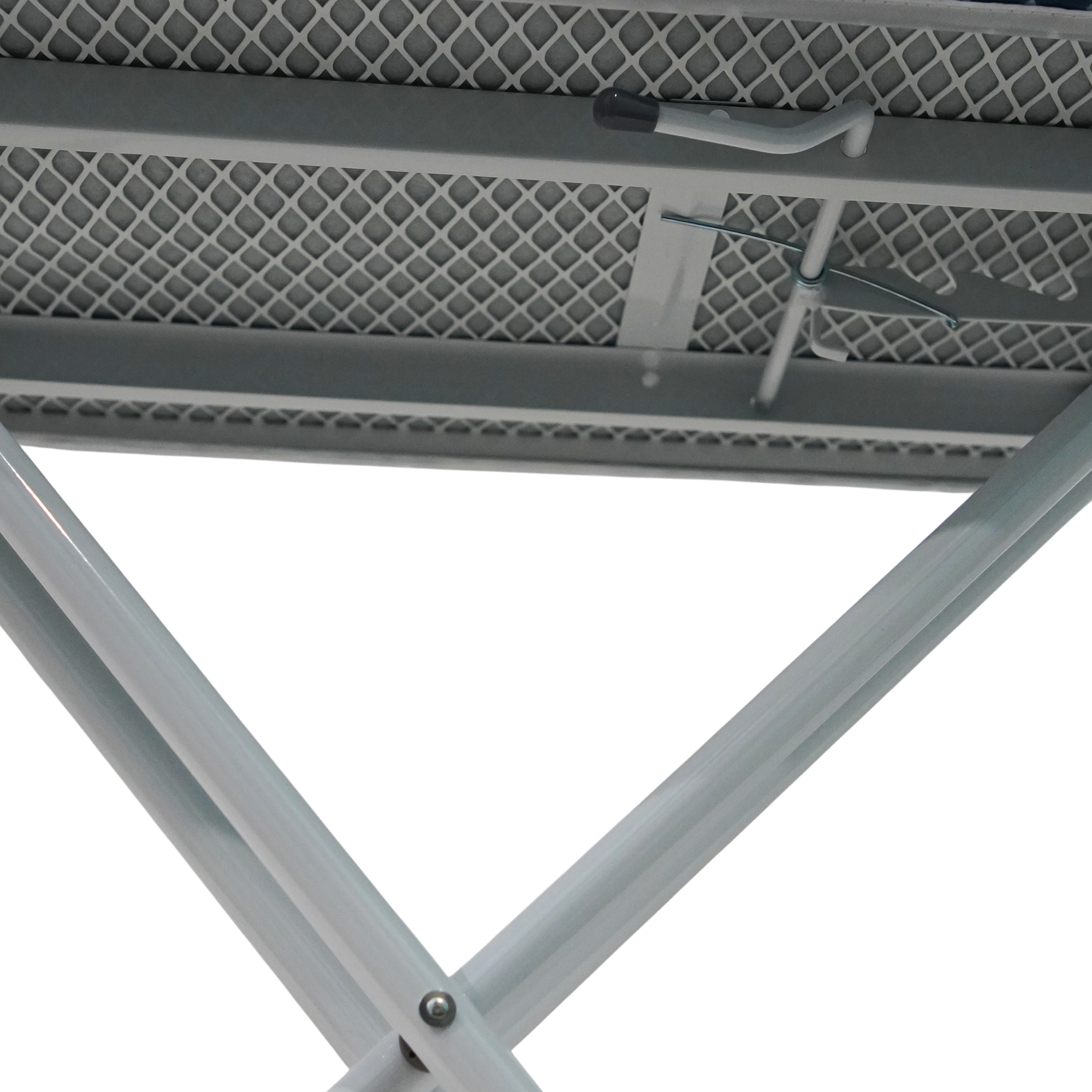 Khung kim loại chắc chắn Khung bằng kim loại, chịu lực tốt và có độ bền cao. Mặt bàn để ủi được làm bằng ván ép chất lượng, đủ độ cứng nhưng vẫn gọn nhẹ
