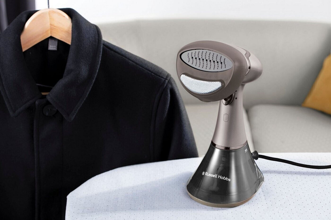 Hơi phun tăng cường lên tới 250 g giúp làm phẳng cả những nếp nhăn cứng đầu: Thâm nhập sâu hơn vào cấu trúc vải để loại bỏ ngay cả những nếp nhăn cứng đầu.