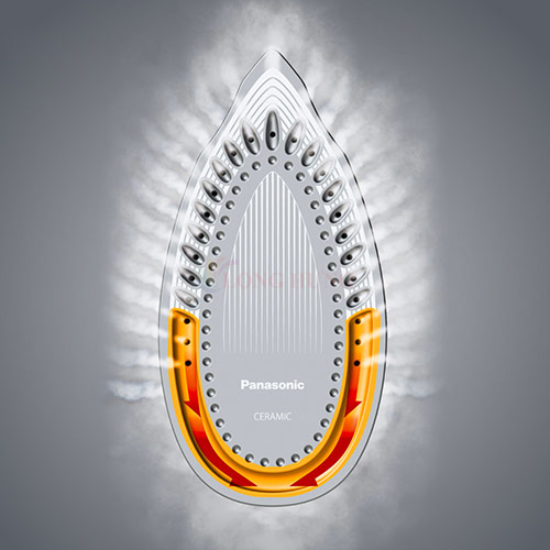 Bàn ủi hơi nước Panasonic NI-S630VRA Mặt đế Ceramic chống dính cao cấp, trượt nhẹ và an toàn trên bề mặt vải. Bình nước dung tích 300 ml ủi được khoảng 4 - 5 bộ
