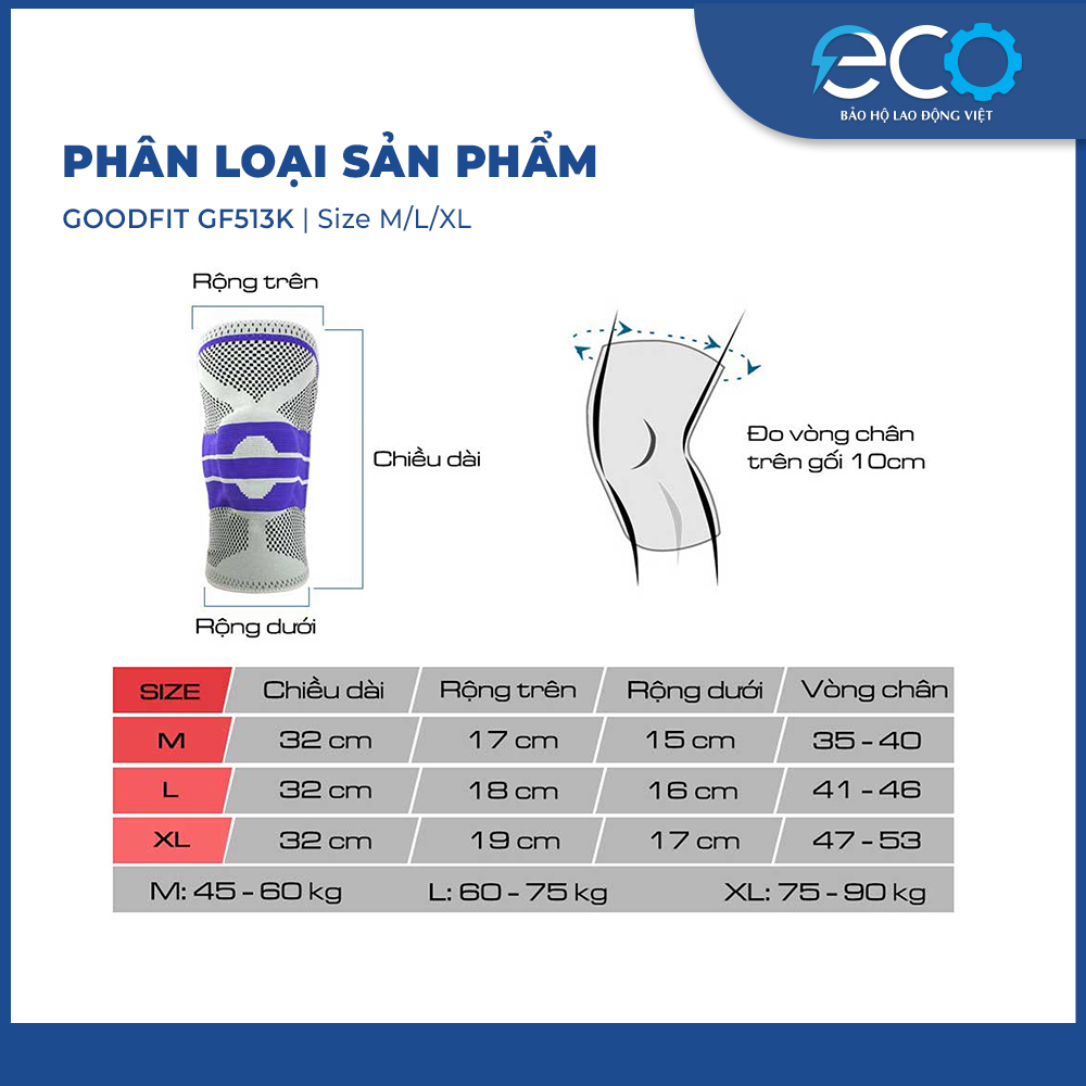 ✨Băng bảo vệ đầu gối, bó gối thể thao silicon GF513K GoodFit chính hãng giá tốt