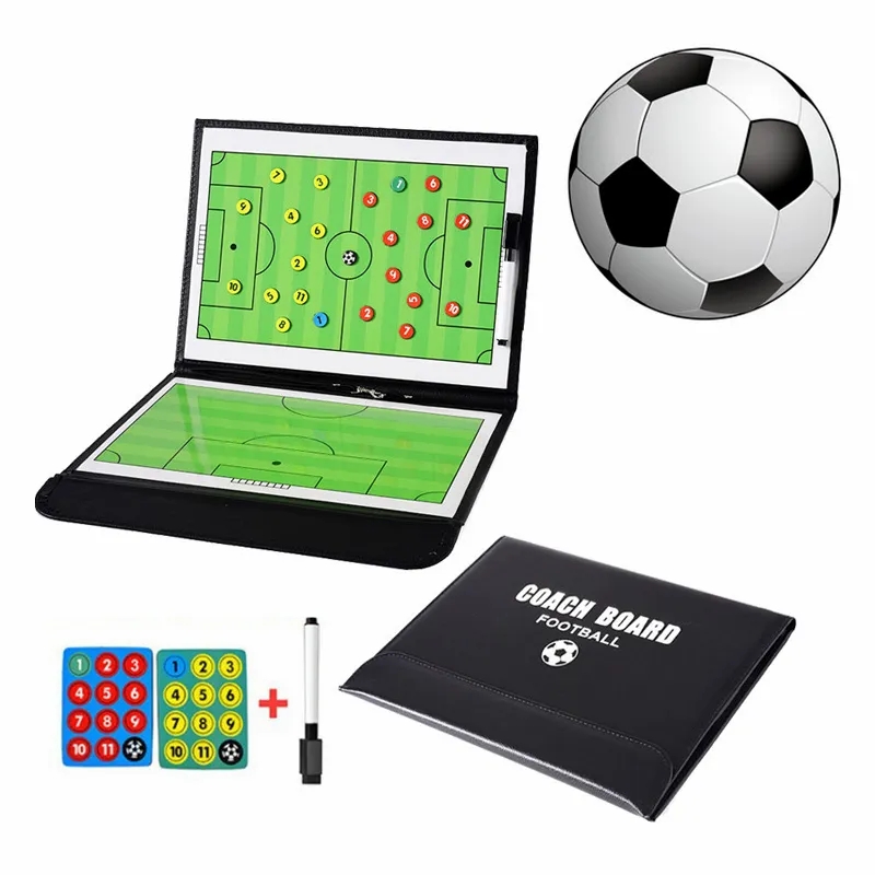 Bảng chiến thuật bóng đá gấp. Kèm bút dạ. Bảng chiến thuật bóng đá gấp được làm bằng chất liệu nhựa cao cấp, màu sắc bắt mắt, dễ theo dõi. Bảng chiến thuật bóng đá