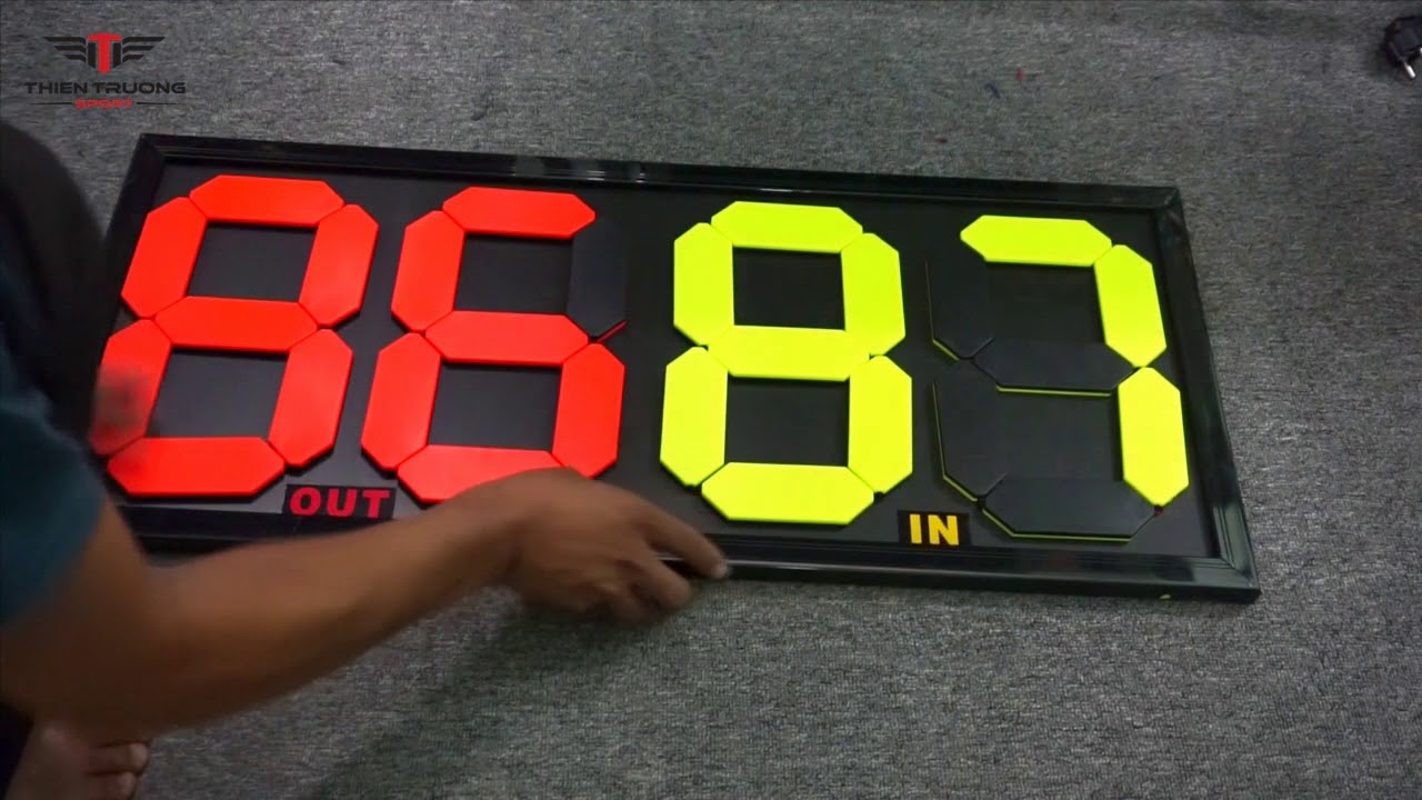 ✨Bảng thay người bóng đá 4 số bằng nhựa, chữ số hiển thị cả 2 mặt từ 00 đến 99 và đạt tiêu chuẩn thi đấu môn bóng đá.